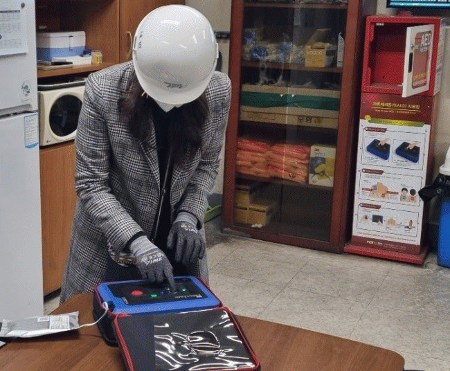 õô ùε Ȳ ɷ ȭϰ ȣϱ ڵݱ(AED) ǽѴٰ .