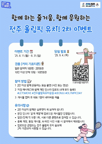 ̹ 8 11Ϻ 31ϱ 2 ̻ Բ ̴ ̳ Կ SNS Խϰ, ʼ ؽ±(#LETSMOVE #ֿøġ #OLYMPICDAY #JEONJU) ִ. ƮĪ, å, , Ȱ ϸ, Խù ĸó Բ û(̹ ) ϸ Ϸȴ.