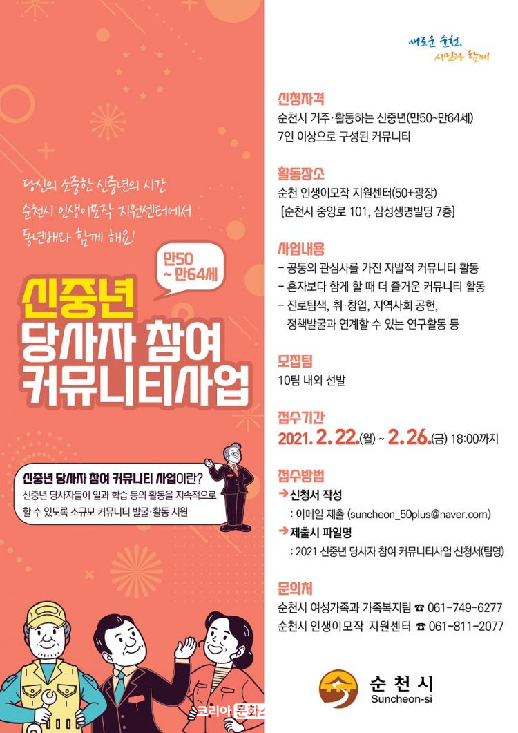 Ȱ , , Ʈ ȸ ް Ǹ, ûⰣ 2 22Ϻ 26ϱ, õ ̸ Ϳ 湮 Ǵ ڿ(suncheon_50plus@naver.com) û ϴٰ ߴ.