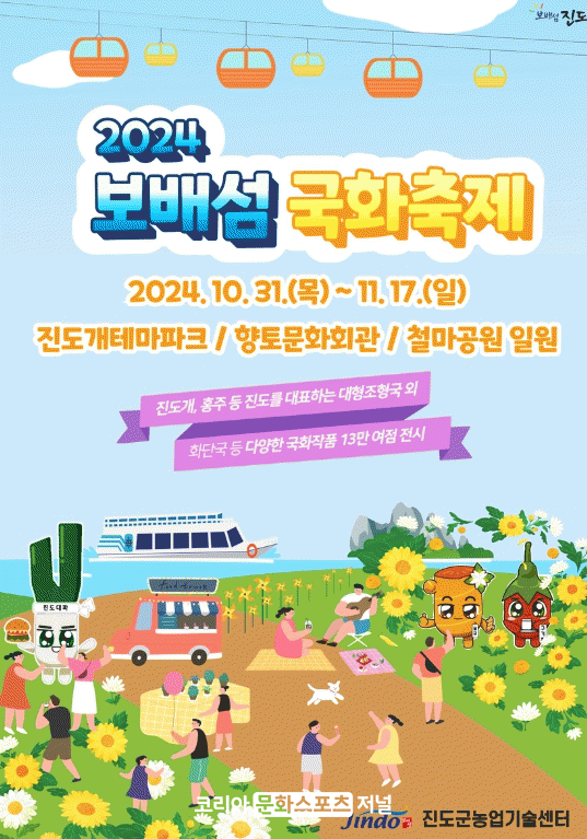 ¡®³ª¶û °°ÀÌ °¥·¡! Áøµµ ±¹ÈÁ¤¿ø!¡¯À̶ó´Â Ç¥¾î(½½·Î°Ç)¸¦ ³»¼¼¿î À̹ø ÃàÁ¦´Â ±¹È 13¸¸ º»À» »ý»êÇØ Ãß¾ï, Ä¡À¯, Èñ¸Á, ³ó»ê¹° µîÀÇ ÁÖÁ¦(Å׸¶)·Î, 7°³ Á¤¿ø¿¡ ´ëÇü Á¶Çü±¹, ºÐÀç±¹, Çö¾Ö±¹, ´ë±¹ µî ¾à 500Á¡ÀÇ ´Ù¾çÇÑ ±¹ÈÀÛǰÀ» Àü½ÃÇÑ´Ù.