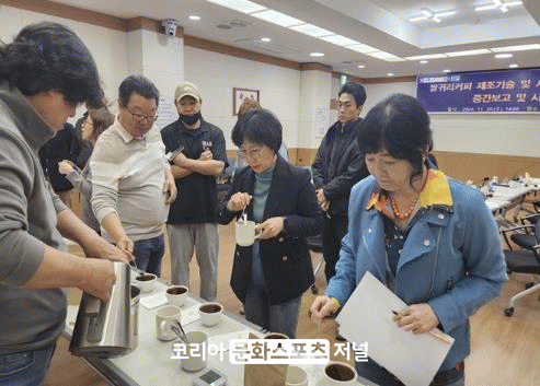 À̹ø º¸°íȸ´Â À̺´Ã¶ ºÎ±º¼ö¸¦ ºñ·ÔÇØ Ä¿ÇÇ Àü¹®°¡, °ü³» Ä¿ÇÇ ÆÇ¸Å¾÷¼Ò 5°³¼Ò, °ø¹«¿ø µî 10¿© ¸íÀÌ Âü¼®ÇÑ °¡¿îµ¥ °ÁøÀÇ ´ëÇ¥ Ư»ê¹°ÀÎ ½Ò±Í¸®¸¦ Ȱ¿ëÇÑ Ä¿ÇÇ 2Á¾(µå¸³¹é, Äݵåºê·ç) °³¹ß ¿ë¿ªÀÇ ÁøÇà»óȲ¿¡ ´ëÇØ ÀÚ¼¼ÇÑ ¼³¸íÀ» µè°í ½ÃÀ½È¸¸¦ ÅëÇØ ¸À, Çâ¿¡ ´ëÇÑ °ü´É Æò°¡¿Í °³¼±»çÇ׿¡ ´ëÇÑ ÀǰßÀ» ¼ö·ÅÇß´Ù.