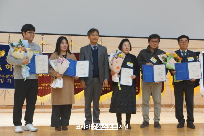 ÀÌ ÀÚ¸®¸¦ ÅëÇØ Àå¾ÖÀεéÀÇ º¹Áö ÁõÁø ¹× »îÀÇ Áú Çâ»óÀ» À§ÇØ ³ë·ÂÇϽŠºÐµé²² ±¤ÁÖÁöüÀå¾ÖÀÎÇùȸÀå»ó ¹× ±¤ÁÖ±¤¿ª½ÃÀå»ó, ±¤ÁÖ±¤¿ª½ÃÀÇȸÀÇÀå»ó, ±¤ÁÖ±³À°°¨»ó µî À¯°øÀÚ¸¦ ǥâÇÏ¿© °¨»ç¿Í °Ý·ÁÀÇ ¸¶À½À» ÀüÇÏ°í ±â³ä½Ä¿¡´Â °³È¸, ³»ºó¼Ò°³, À¯°øÀÚǥâ, ´ëȸ»ç, Ãà»ç, ±â³äÃÔ¿µ µîÀÇ ¼ø¼·Î ÁøÇàµÆ´Ù.