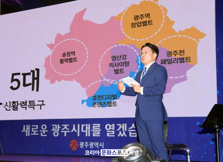 ° ½ÃÀåÀº ¡°½Ã¹ÎµéÀÇ »îÀÌ ¹Ù²î°í ½Ã¹ÎµéÀÌ ÇູÇÑ ±¤ÁÖ¸¦ À§Çؼ´Â ½Ã´ëÀÇ º¯È¿¡ ¸Â´Â »õ·Î¿î »ê¾÷ °æÀï·ÂÀÌ ÇÊ¿äÇÏ´Ù¡±¸ç À̸¦ ½ÇÇöÇϱâ À§ÇØ ¡®±¤ÁÖ ½Å°æÁ¦Áöµµ¡¯¿Í ¡®±¤ÁÖ ½ÅȰ·ÂƯ±¸¡¯¸¦ ±¸ÃàÇϰڴٴ °èȹÀ» ¹àÇû´Ù.