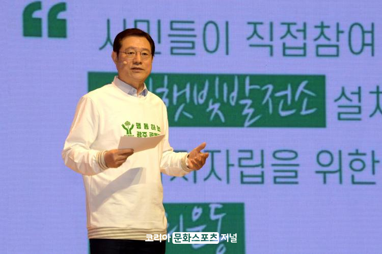 À̿뼷 ½ÃÀåÀº 2021³â ½ÇÇà°èȹÀ» ¹ßÇ¥ÇÏ´Â ÀÚ¸®¿¡¼ ¡°Åº¼ÒÁ߸³ ¿¡³ÊÁö ÀÚ¸³µµ½Ã´Â ¿ì¸® 150¸¸ ±¤ÁÖ °øµ¿Ã¼°¡ ±âÈÄÀ§±â ´ëÀÀÀ̶ó´Â ½Ã´ëÀû ¼Ò¸íÀ» °®°í ºÎÀÀÇÒ ¶§¿¡ ºñ·Î¼Ò ÀÌ·ê ¼ö ÀÖÀ» °ÍÀÌ´Ù¡±°í °Á¶ÇÏ¸é¼ ¡°¿ÃÇØ ½Ã¹ÎÁÖµµ ³ì»öºÐ±ÇÀÇ ½ÇÇöÀ» ÅëÇØ ±¤ÁÖ °øµ¿Ã¼°¡ ÈûÀ» ¸ð¾Æ °¡Àå ¾ÈÀüÇÏ°í ±ú²ýÇÏ°í »ì±â ÁÁÀº ±Û·Î¹ú ³ì»öµµ½Ã, ±¤ÁÖ¸¦ ÇÔ²² ¸¸µéÀÚ¡±°í Á¦¾ÈÇß´Ù.
