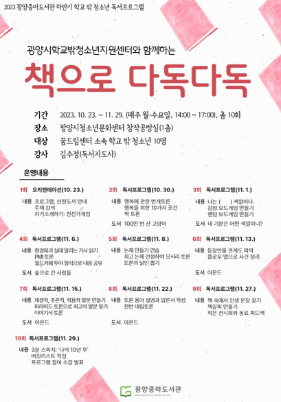 ߸ 2 ûҳ '2023 Բ å б(ûҳ)' 4 7 12ȸ б ûҳ α üȰ ǽߴ.