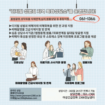 Ưȭҡ ȭ(061-1366) 365 24ð ִ. 2021 ο ų ϴ ְ 2023 Ưȭα ȭ 1366͡ Ѵ.