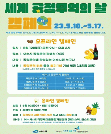 (World Fair Trade Day) ùε ߱ 뵿 밡 ϰ Һ Ȱ ֵ پ ķ Ǵ ̴. ų 5 ° Ϸ ƴ.